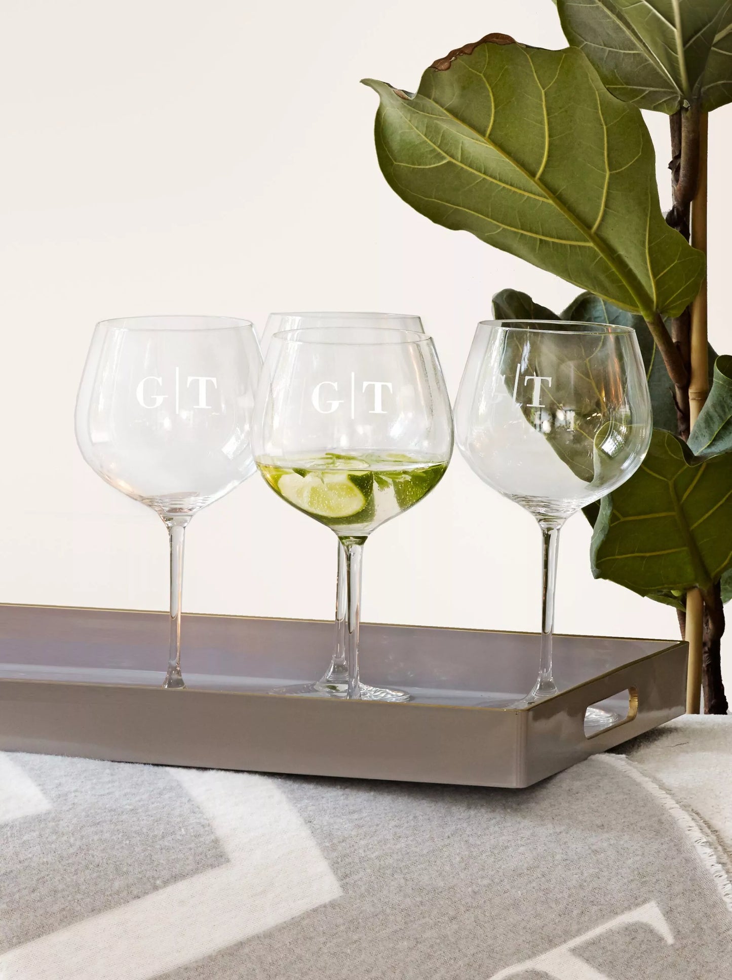 Ultra-light Gin Tonic glass, with the text "GT" on the glass. A great gift idea!