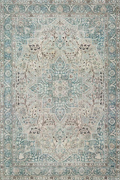 The Cecilia oriental rug is an easy-care, smooth-surfaced rug with a stylish pattern. The soft shades of light blue and beige give the rug a stylish and fresh look.