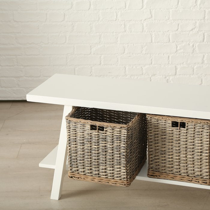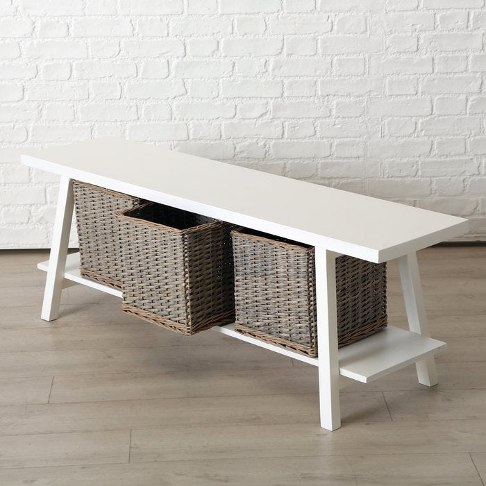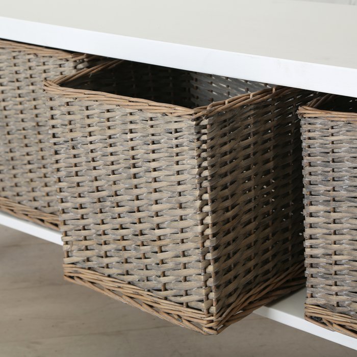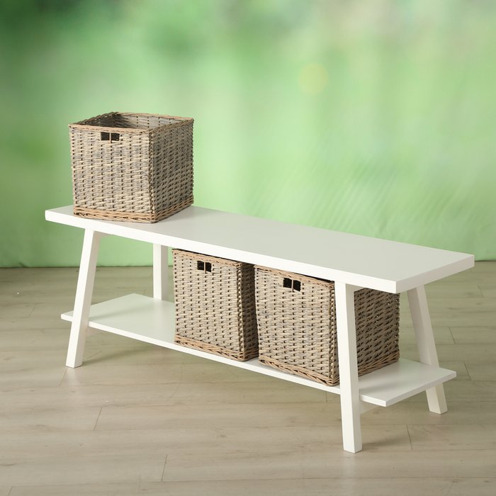 Bench for entrance hall or glazed terrace/balcony (not weatherproof), baskets for storage, sturdy. Does not come assembled.