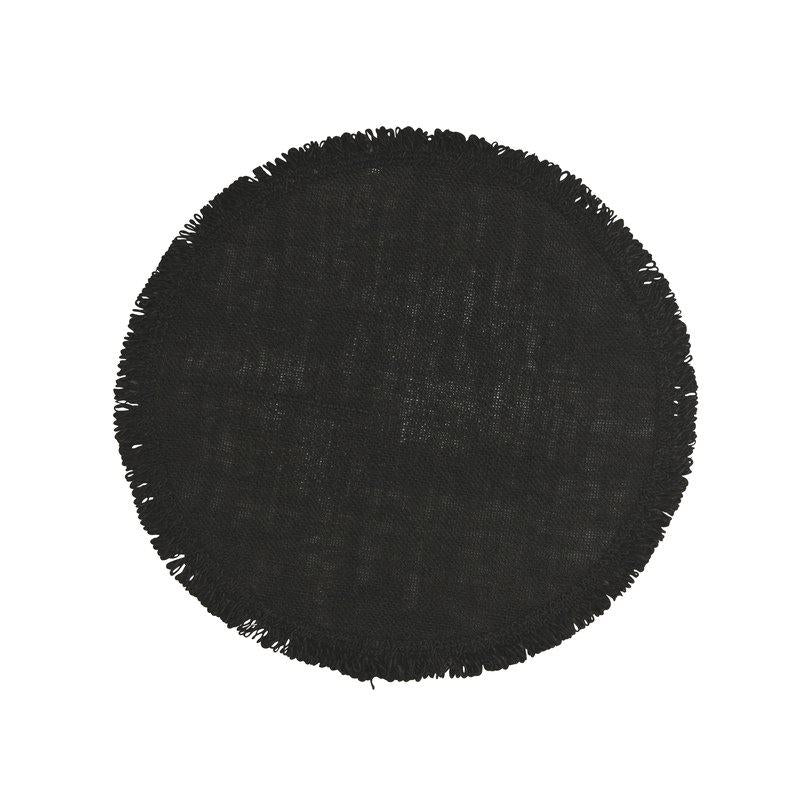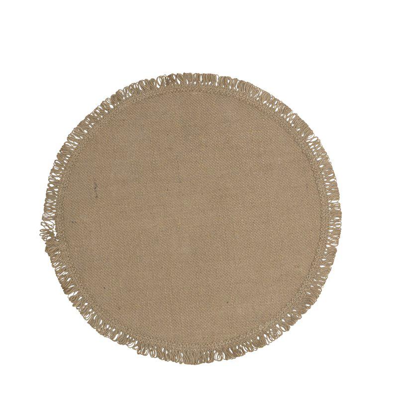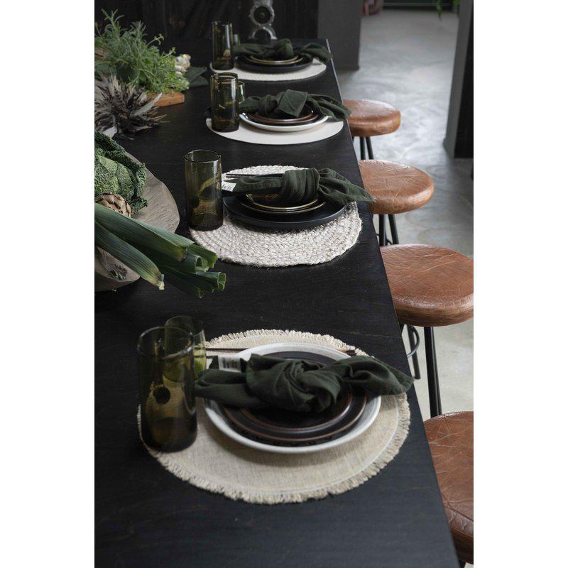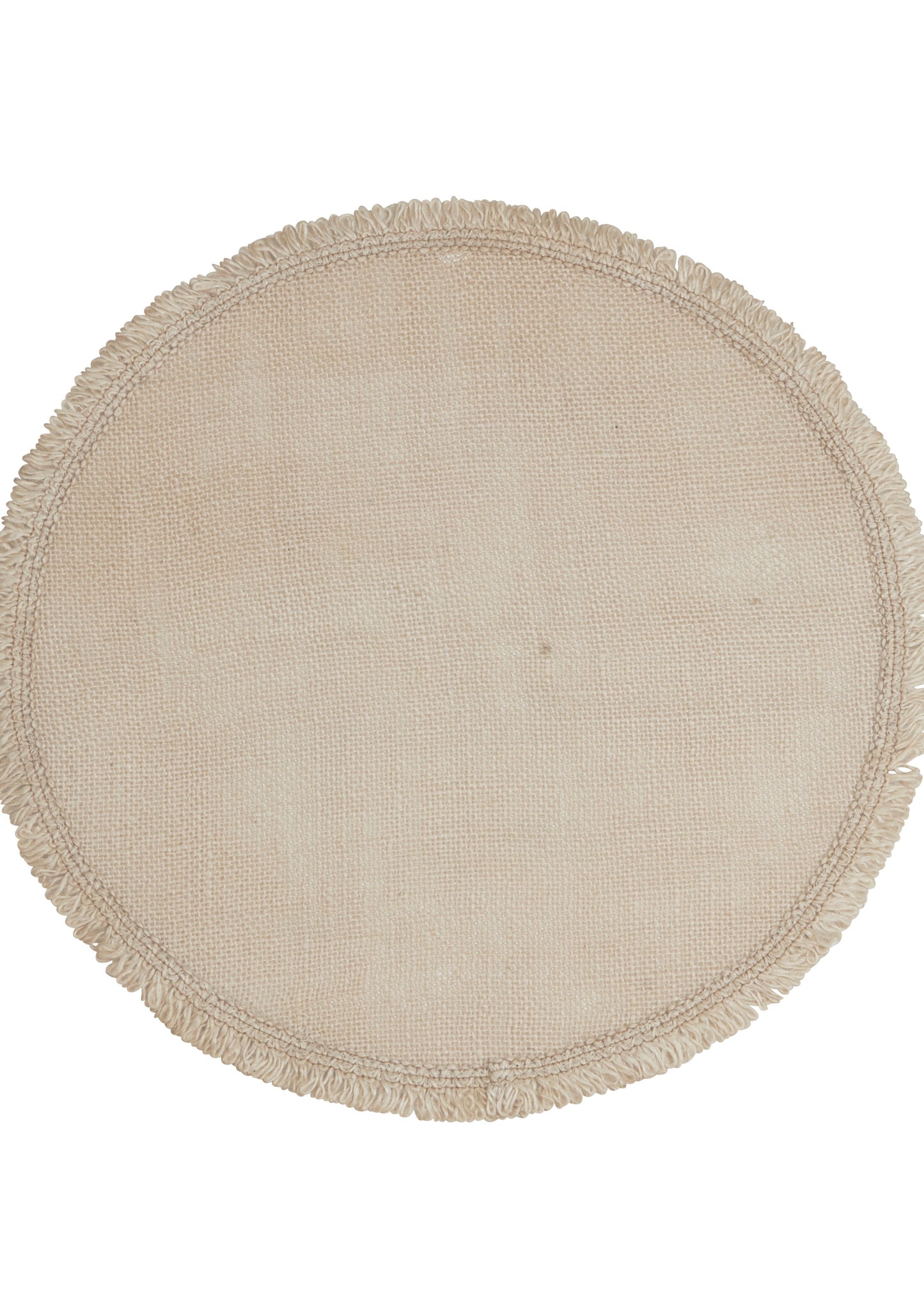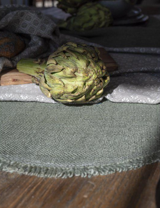 For a bohemian interior Handmade linen tablet, fringes on the edges.