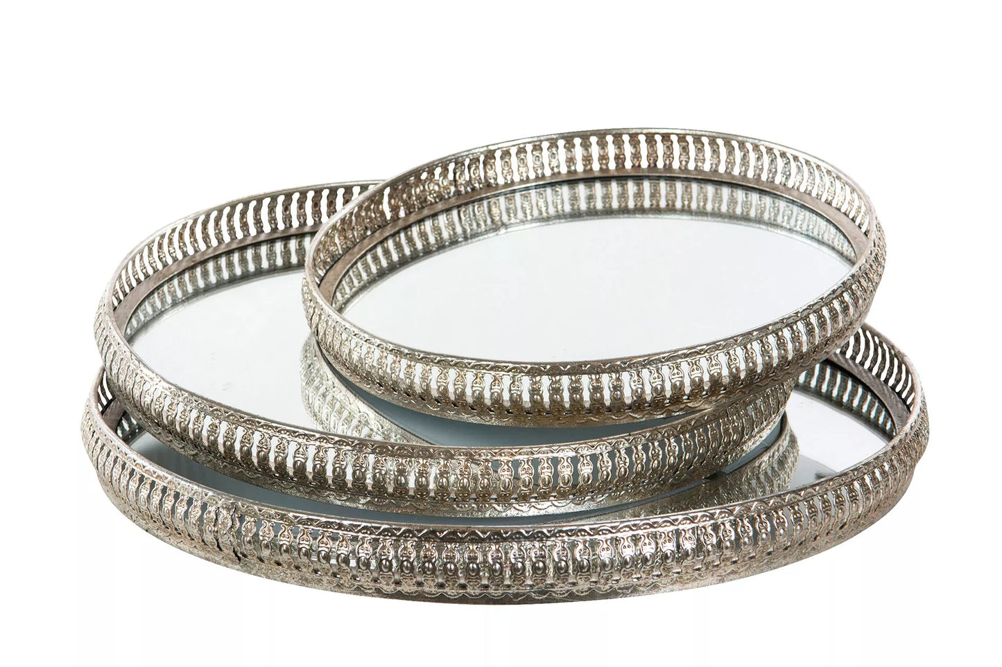 Peilitarjotin pyöreä hopea kaksi kokoa