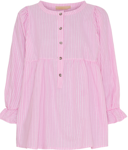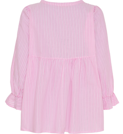 Abelia puseross edessä poikkileikkaus rintojen alta, napitus, hihansuissa röyhelö ja kuminauha, o-pääntie.