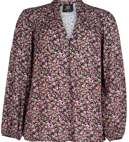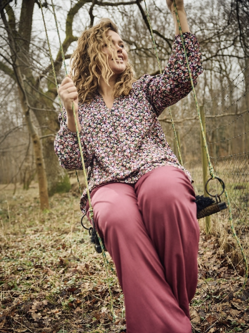 Josie viskoosi puserossa, v-pääntie, kaunis pikkukukallinen kuosi, löysä malli, hihansuissa kuminauha.