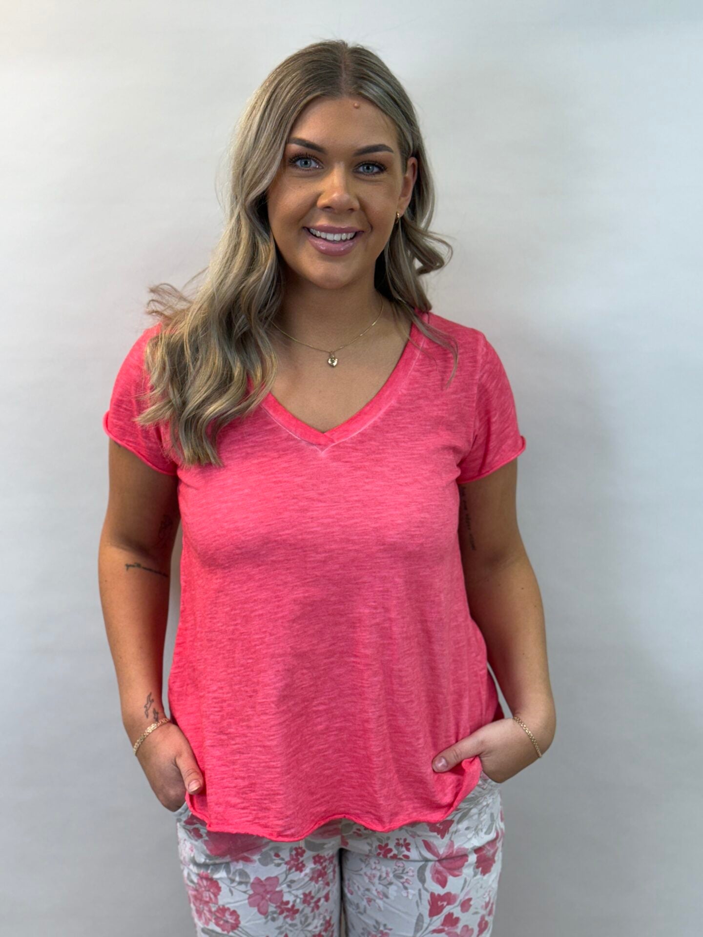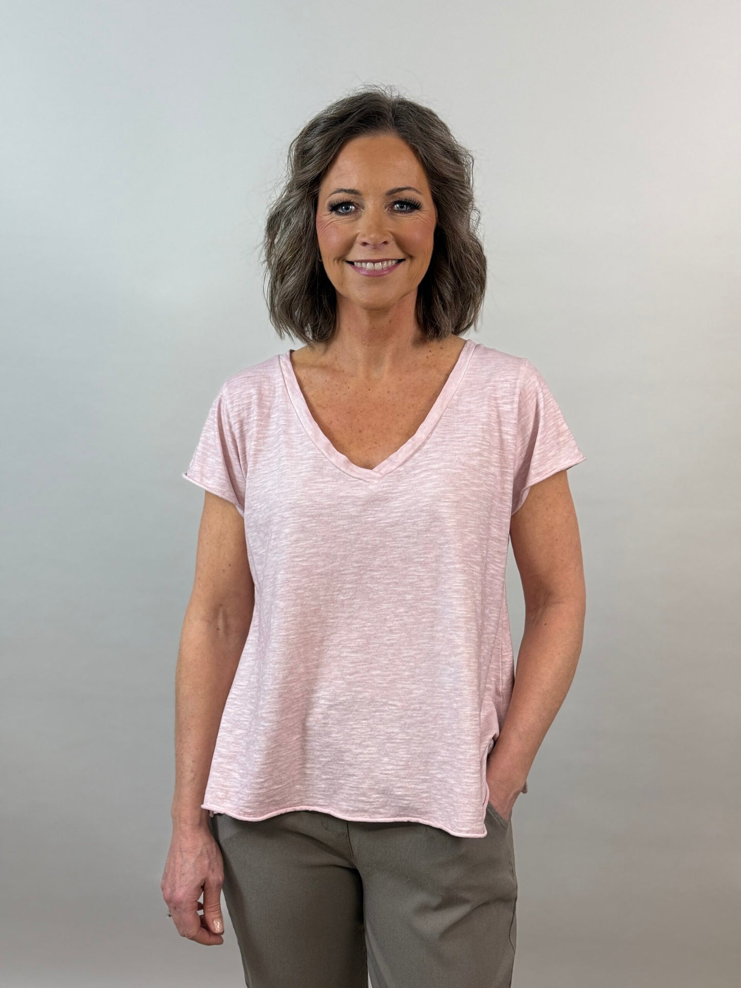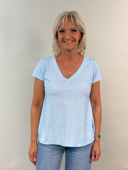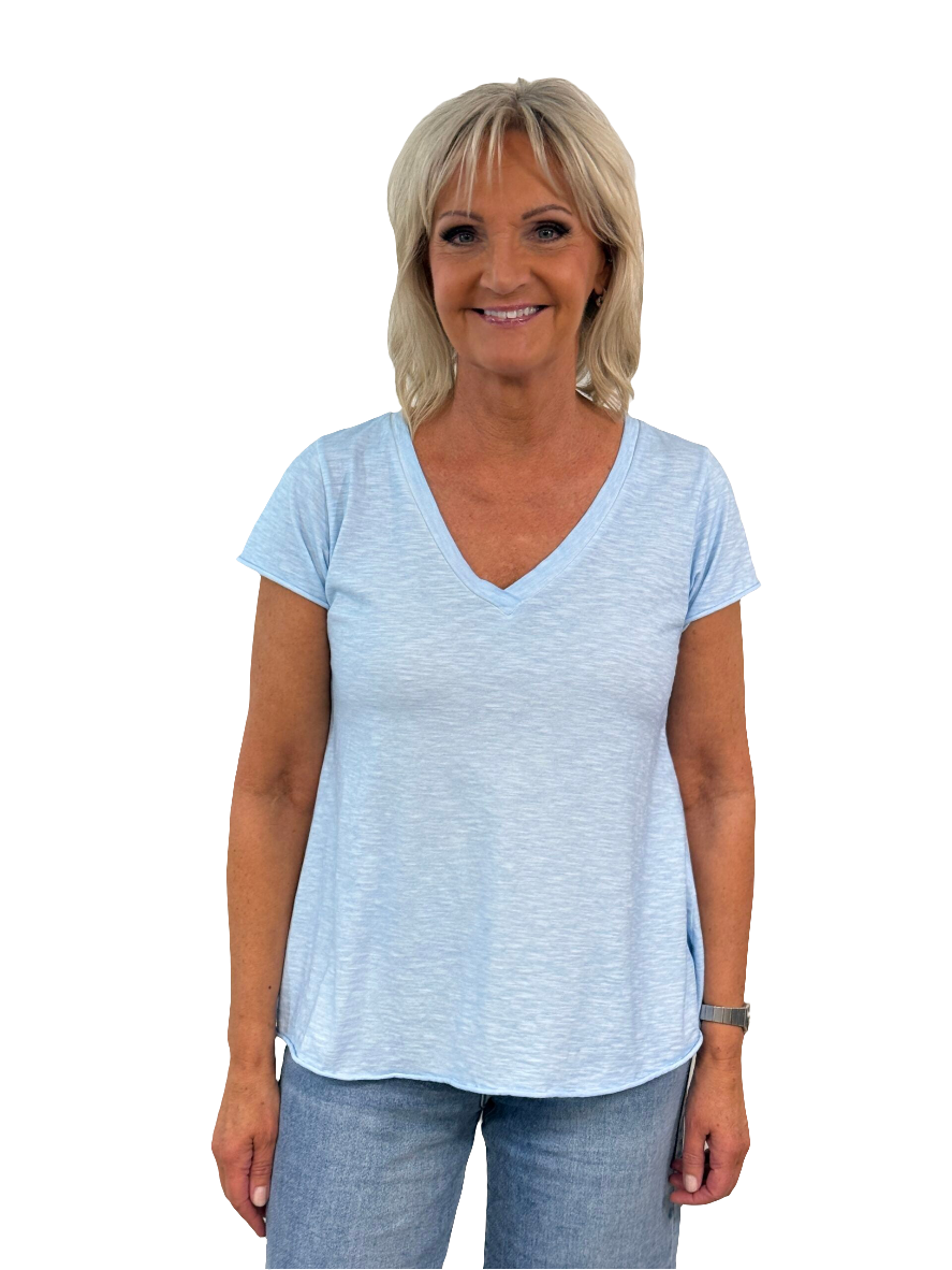 A-linjainen t-paita, v-pääntie, lyhyt hiha.