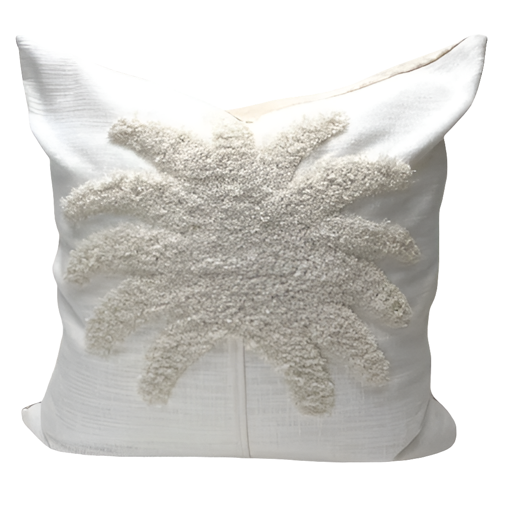 Key West tyynynpäällisessä koristeen tuftattu palmu, toinen puoli luonnonvalkoinen, vetoketju.