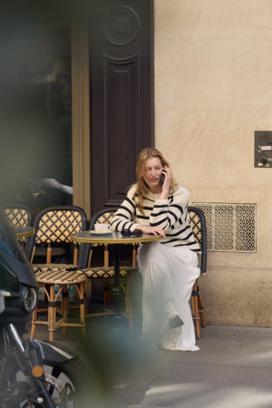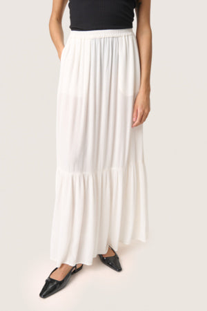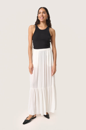 Maxikjol, volangkant, resår i midjan, fast underkjol. Kombinera med Susanna-tröja eller stickad topp .