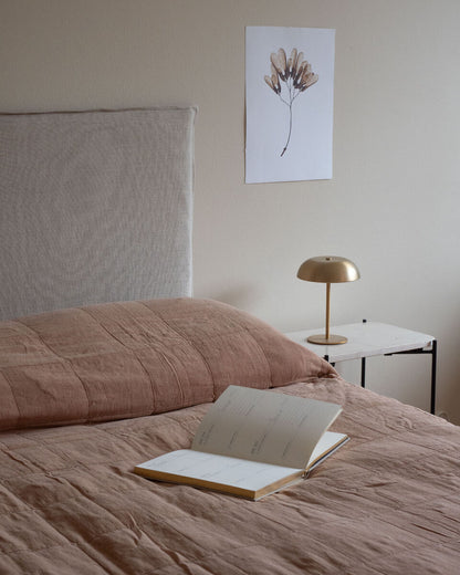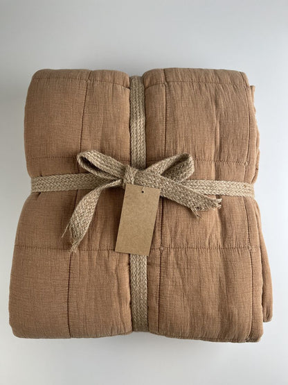 Skapa en avslappnad, stilren look i sovrummet med ett överkast i stentvättad bomull. Den vackra nyansen på filten lockar dig att prova olika kuddar som passar till den. Det vackra överkastets bomullstyg är quiltat i rutor.