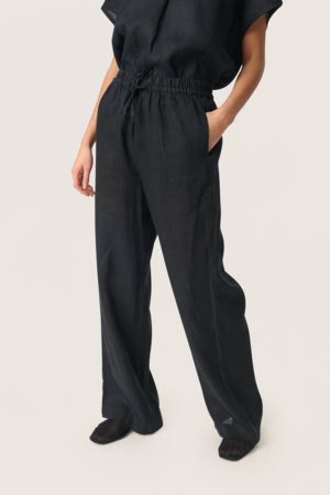 Linnebyxor är de bästa sommarplaggen. Byxorna har resårband och dragsko i midjan, vida och raka ben samt sidfickor. Avslappnad passform.