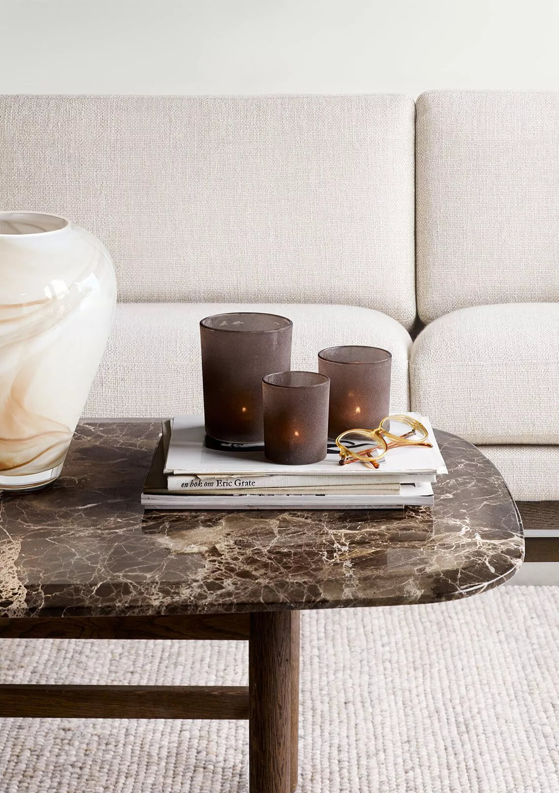 Det eleganta frostade espressofärgade lyktsetet, med en matt utsida, sänder vackert ljuset från ljuset.