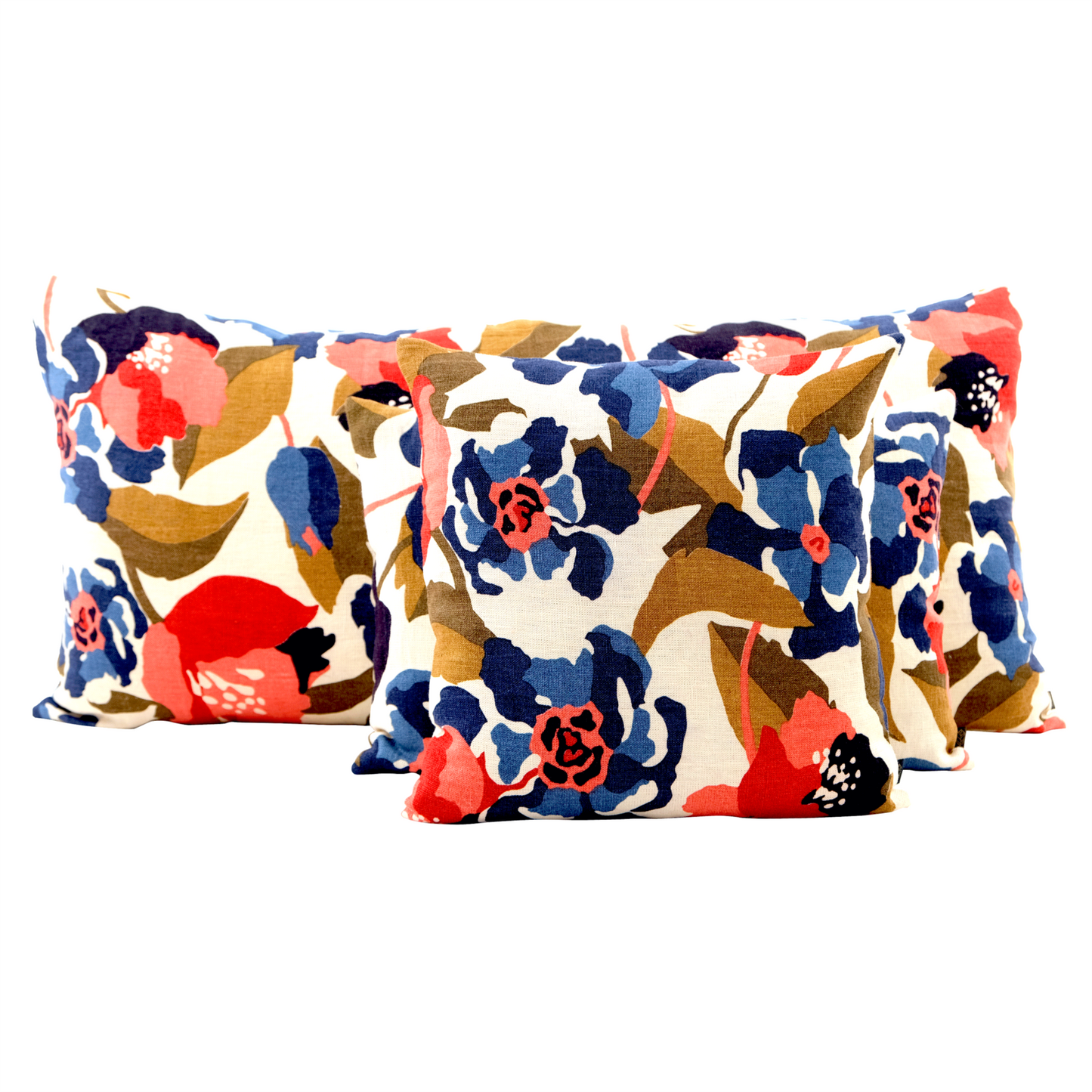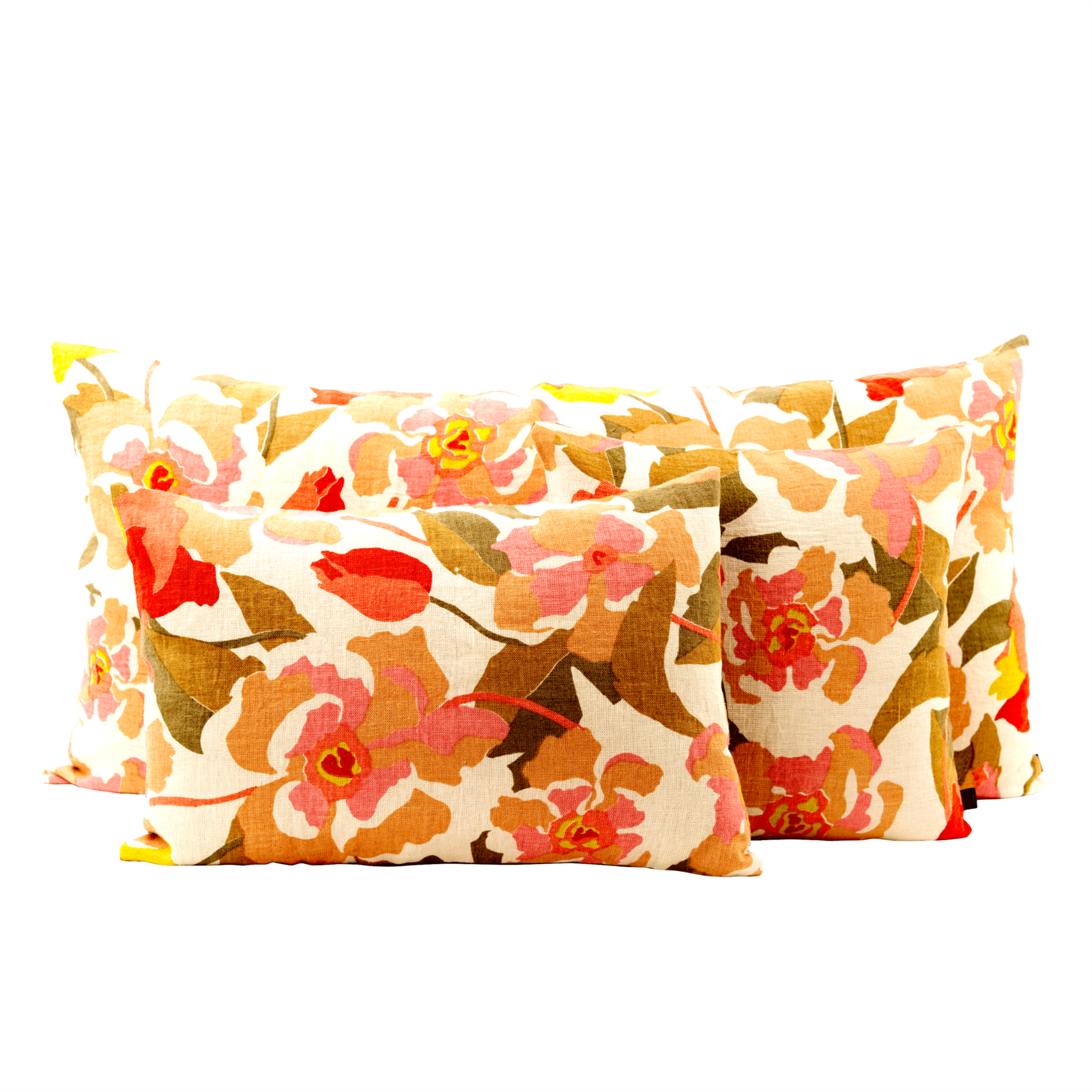 Ibiza linnekuddfodral med vackra blommor och dragsko i botten. Kombinera med det enfärgade kuddfodralet Figari .