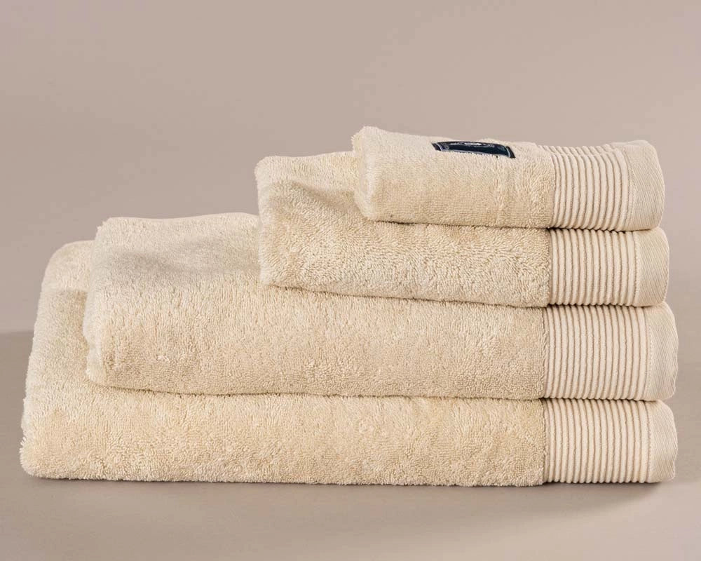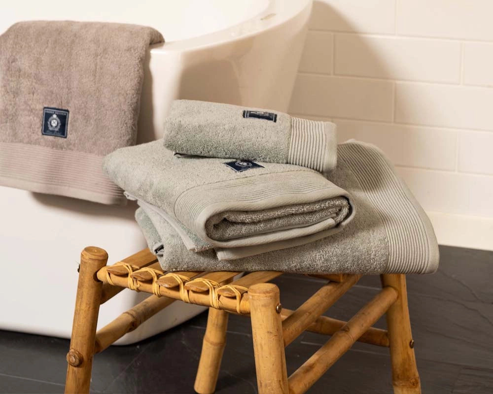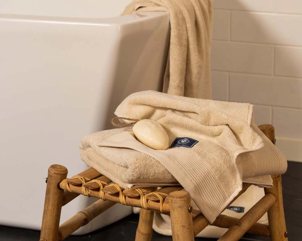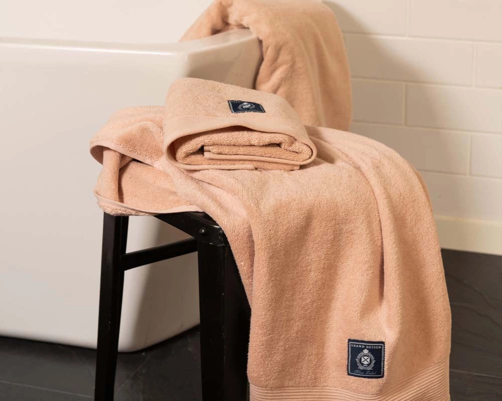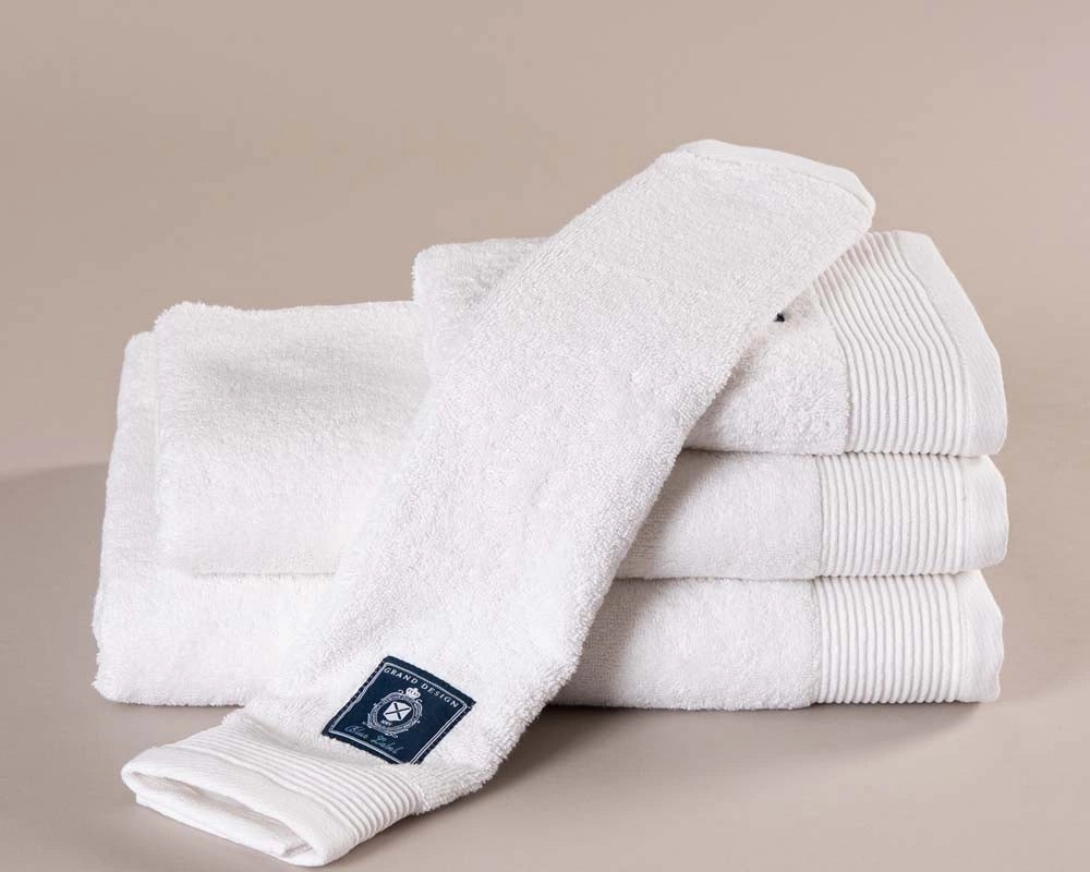 Om du letar efter en bra och mjuk handduk som håller sig bra år efter år är detta ett bra val. Handduken har en vacker bård i botten. Hängögla. Tillverkad av kardad och ringspunnen bomull, vilket ger en mycket slitstark och absorberande handduk.