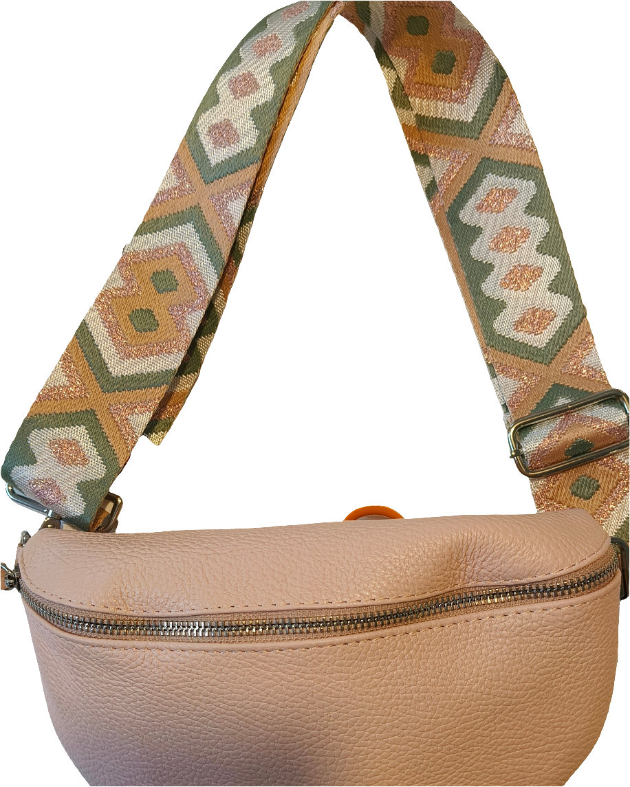 Trendig bälteväska, gjord av högkvalitativt läder, läderrem, innerficka. Du kan även kombinera tygremmar med väskan.